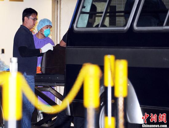 在埃及熱氣球事故中遇難的九名港人遺體,3月11日傍晚運(yùn)返香港,再由靈車轉(zhuǎn)送葵涌公眾殮房。中新社發(fā) 譚達(dá)明 攝