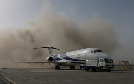 中國經(jīng)濟(jì)網(wǎng)訊 2013年3月31日,ARJ21-700飛機(jī)102架機(jī)進(jìn)行了轉(zhuǎn)場(chǎng)后的首次檢飛。102架機(jī)于上午9時(shí)21分在嘉峪關(guān)機(jī)場(chǎng)起飛,經(jīng)過1小時(shí)46分鐘的飛行,于11時(shí)07分降落,順利完成了檢飛任務(wù)。局方試飛員對(duì)飛機(jī)性能和狀態(tài)給予了肯定。