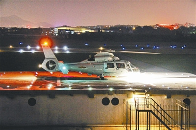 中國某艦載機部隊直升機模擬夜間海上著艦