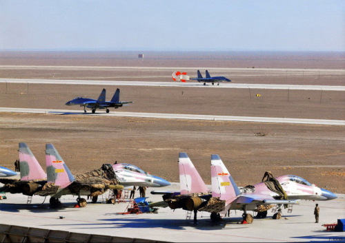 解放軍廣空部隊(duì)粉色涂裝蘇-30MKK假想敵戰(zhàn)機(jī)部隊(duì)在西北基地與殲11戰(zhàn)機(jī)對(duì)抗訓(xùn)練照曝光。