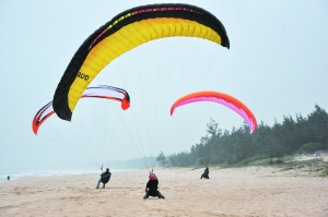 這是一群“斗傘”的人,從他們的如小麥般的膚色不難看出他們對于陽光和沙灘的熱愛,他們手中的滑翔傘在海風(fēng)中像撐滿了的帆,似乎稍一放松,它就會帶著操縱者乘著風(fēng)向天邊飛去,地上的操縱者則像在與大自然較量,他們把身體重心放到最低,幾乎都要坐在甚至躺在沙灘上。