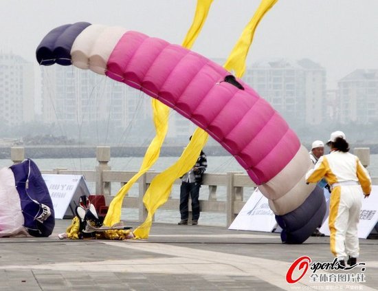 2011年12月17日,2011環(huán)海南飛行拉力賽在?陂_幕,80余具航空器將競秀海口灣。在開幕式上,一名女跳傘運(yùn)動(dòng)員表演落地時(shí)降速太快導(dǎo)致受傷被送醫(yī)院。