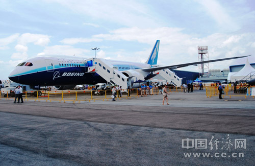“夢幻客機”波音787在航展中亮相。中國經(jīng)濟網(wǎng)陶杰/攝影