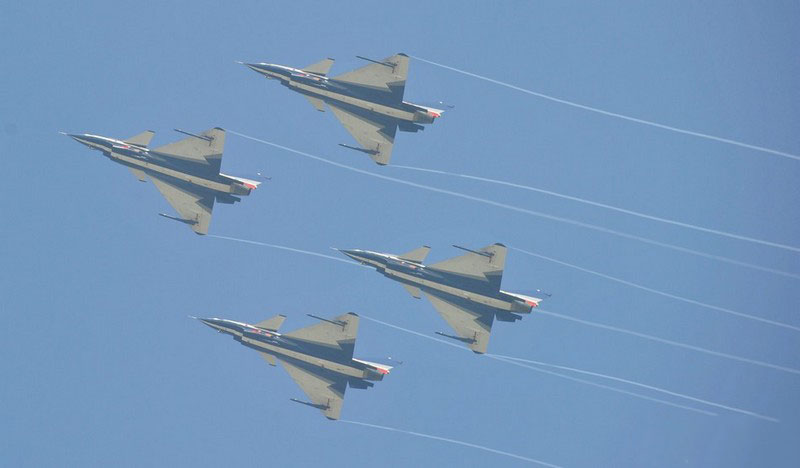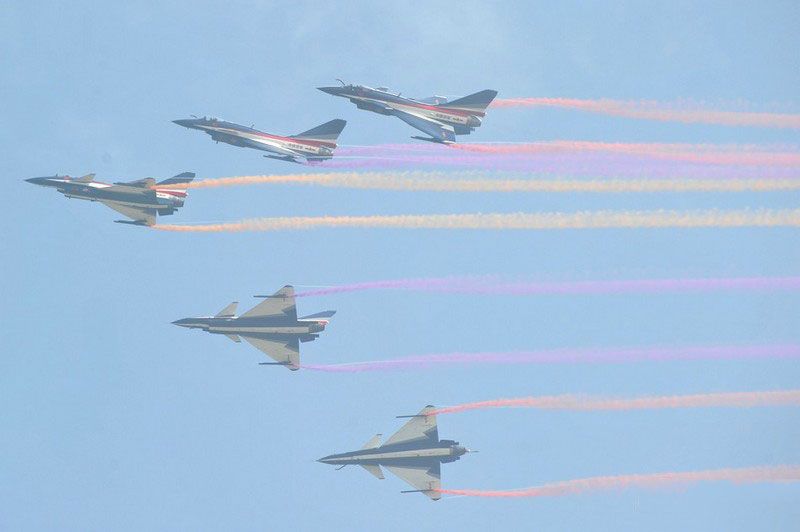 【環(huán)球網(wǎng)赴珠海航展特派報(bào)道組綜合報(bào)道】第九屆中國(guó)國(guó)際航空航天博覽會(huì)(珠海航展2012)將于11月13日-18日在廣東省珠海市金灣區(qū)三灶鎮(zhèn)隆重舉行。開(kāi)展當(dāng)日,中國(guó)空軍八一飛行表演隊(duì)的6架殲-10戰(zhàn)機(jī)翱翔藍(lán)天,漫步云端。