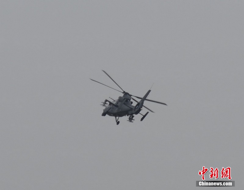 中新網(wǎng)珠海11月11日電(陳海峰) 中國(guó)陸航直19武裝直升機(jī)11日在珠海航展上空進(jìn)行了精彩的飛行表演。
