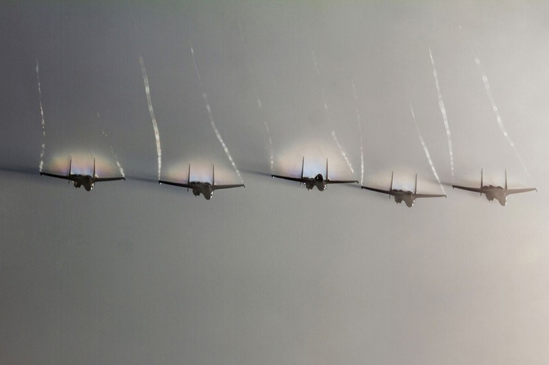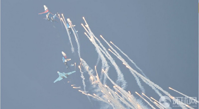 俄羅斯勇士表演隊空中齊放干擾彈