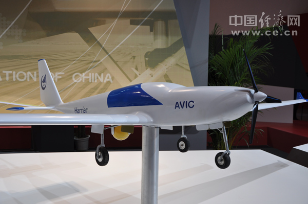 中航工業(yè)比例為1:6的鷂鷹無人機(jī)模型,該機(jī)型將亮相本屆珠海航展 中國(guó)經(jīng)濟(jì)網(wǎng)記者 段丹峰 攝
