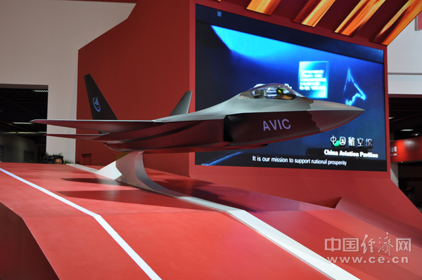 中航工業(yè)展館里的比例為1:4先進戰(zhàn)斗機概念機 中國經(jīng)濟網(wǎng)記者 段丹峰 攝
