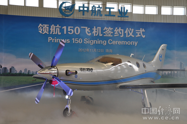 中國(guó)經(jīng)濟(jì)網(wǎng)珠海航展特派記者團(tuán)記者段丹峰 劉瑾11月12日?qǐng)?bào)道 12日下午,中航通用飛機(jī)有限責(zé)任公司在珠海基地舉行我國(guó)首款具有自主知識(shí)產(chǎn)權(quán)的全復(fù)合材料輕型公務(wù)機(jī)——領(lǐng)航150下線揭幕暨簽約儀式;并在儀式現(xiàn)場(chǎng)喜獲8架用戶訂單。