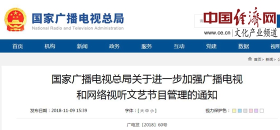 國家廣播電視總局關于進一步加強廣播電視和網絡視聽文藝節(jié)目管理的通知