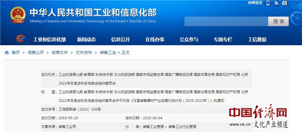 九部門關(guān)于印發(fā)《冰雪裝備器材產(chǎn)業(yè)發(fā)展行動計劃(2019-2022年)》的通知