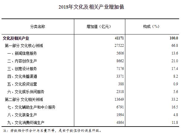 文化及相關(guān)產(chǎn)業(yè)增加值的核算范圍包括《文化及相關(guān)產(chǎn)業(yè)分類(2018)》中規(guī)定的全部文化及相關(guān)活動。