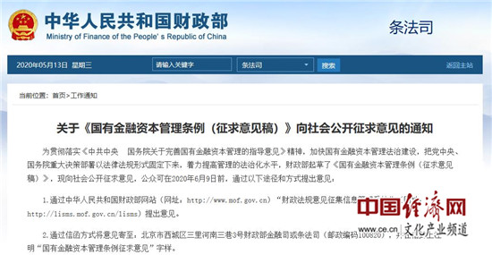 經(jīng)濟日報-中國經(jīng)濟網(wǎng)北京5月15日訊 日前,財政部起草了《國有金融資本管理條例(征求意見稿)》(以下簡稱《條例》),并于5月9日起向社會公開征求意見。《條例》分為12章,共105條,主要內(nèi)容包括出資人與受托人職責(zé)、國有金融機構(gòu)基本權(quán)利和義務(wù)、國有金融資本布局、收益管理、風(fēng)險防控、監(jiān)督管理等。