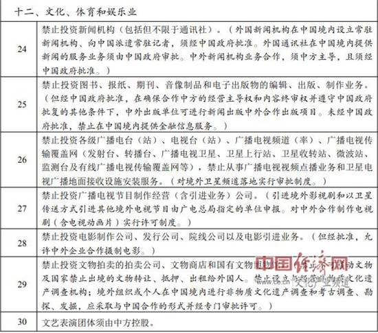 2019年版外商投資準(zhǔn)入負(fù)面清單文體娛相關(guān)內(nèi)容