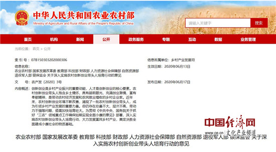經(jīng)濟日報-中國經(jīng)濟網(wǎng)北京6月28日訊 為培育一批帶動農(nóng)村經(jīng)濟發(fā)展和農(nóng)民就業(yè)增收的農(nóng)村創(chuàng)新創(chuàng)業(yè)帶頭人,日前,農(nóng)業(yè)農(nóng)村部、國家發(fā)展改革委等九部委聯(lián)合印發(fā)《關(guān)于深入實施農(nóng)村創(chuàng)新創(chuàng)業(yè)帶頭人培育行動的意見》(以下簡稱“意見”)。意見提出,到2025年,農(nóng)村創(chuàng)新創(chuàng)業(yè)環(huán)境明顯改善,創(chuàng)新創(chuàng)業(yè)層次顯著提升,創(chuàng)新創(chuàng)業(yè)隊伍不斷壯大,鄉(xiāng)村產(chǎn)業(yè)發(fā)展動能更加強勁。農(nóng)村創(chuàng)新創(chuàng)業(yè)帶頭人達到100萬以上,農(nóng)業(yè)重點縣的行政村基本實現(xiàn)全覆蓋。
