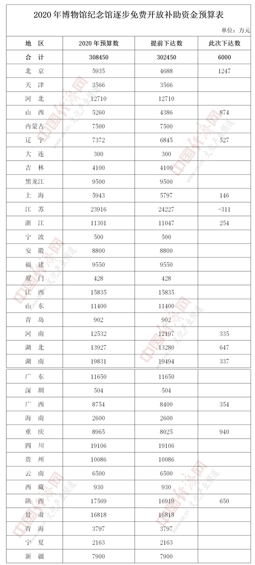 經(jīng)濟日報-中國經(jīng)濟網(wǎng)北京7月8日訊 7日,國家財政部官網(wǎng)發(fā)布《關(guān)于下達(dá)2020年博物館紀(jì)念館逐步免費開放補助資金預(yù)算的通知》(以下簡稱《通知》),《2020年博物館紀(jì)念館逐步免費開放補助資金預(yù)算表》同日公布。