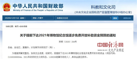 經(jīng)濟日報-中國經(jīng)濟網(wǎng)北京12月15日訊 近日,財政部官網(wǎng)發(fā)布了《關于提前下達2021年博物館紀念館逐步免費開放補助資金預算的通知》,31個?。ㄗ灾螀^(qū)、直轄市)及5個計劃單列市補助資金預算總計277605萬元。
