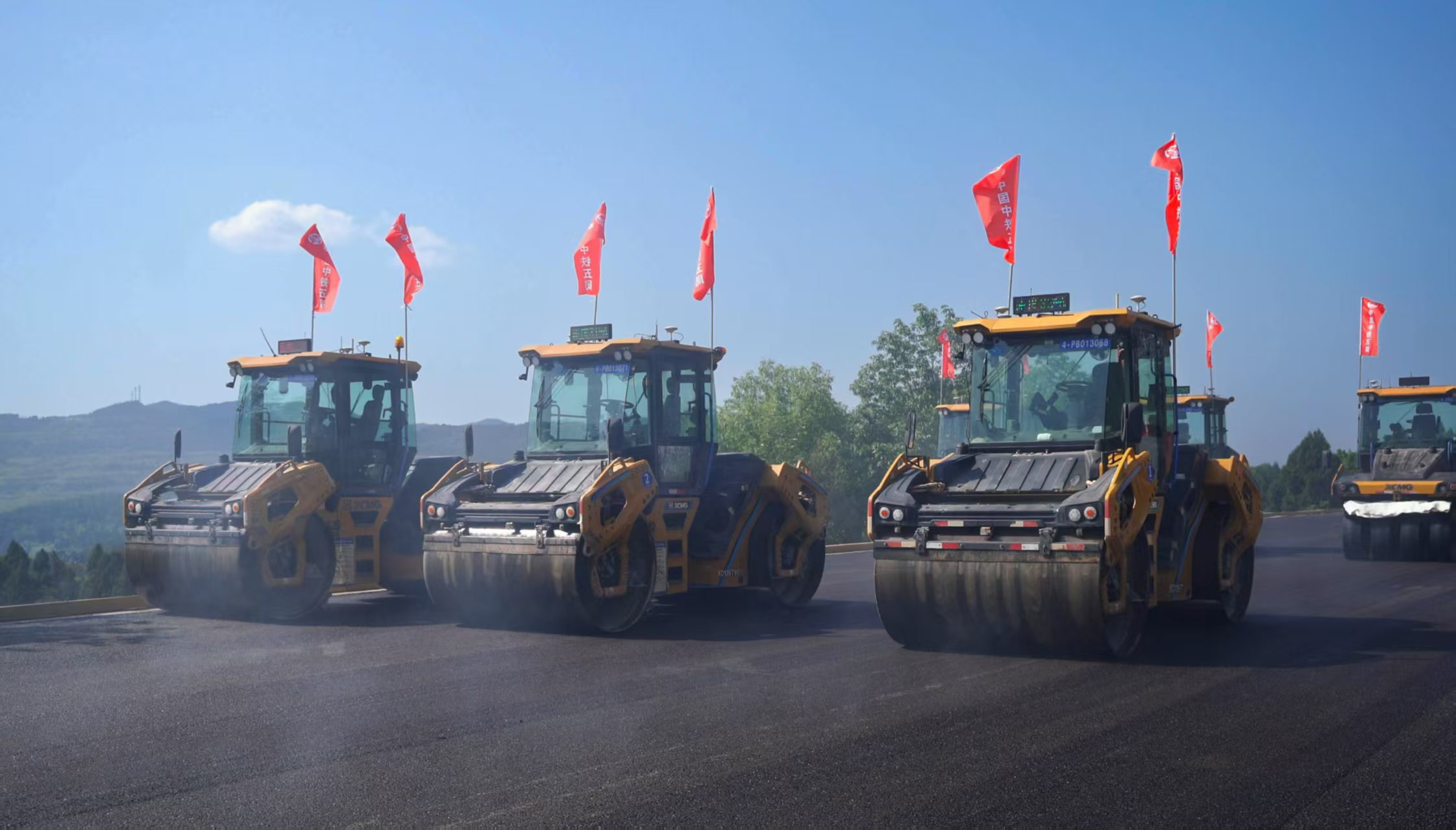 在水穩(wěn)層和瀝青面層施工中,項(xiàng)目實(shí)現(xiàn)了無(wú)人化連續(xù)碾壓。多臺(tái)壓路機(jī)按預(yù)設(shè)參數(shù)自動(dòng)作業(yè),組成“鋼鐵戰(zhàn)隊(duì)”,有效根治了漏壓、過(guò)壓等常見(jiàn)問(wèn)題。無(wú)人壓路機(jī)搭載高精度北斗定位、毫米波雷達(dá)和激光傳感器,平面定位精度達(dá)2厘米,可實(shí)時(shí)感知10米內(nèi)障礙物并實(shí)現(xiàn)10米減速、5米緊急制動(dòng)。系統(tǒng)設(shè)置遠(yuǎn)程急停、自動(dòng)避障、物理急停三級(jí)防護(hù),投用以來(lái)實(shí)現(xiàn)“零安全事故”。施工效率提升25%,設(shè)備燃油消耗降低約15%。