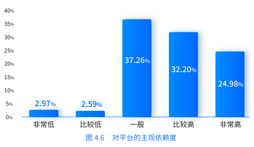 “我們在調(diào)研中發(fā)現(xiàn),貨車司機對使用數(shù)字貨運平臺的主觀依賴度還是很高的?!敝袊嗣翊髮W(xué)中國就業(yè)與民生研究院執(zhí)行副院長周廣肅說。報告中指出,主觀認為自己對平臺的依賴程度較高和非常高的司機占全體調(diào)查司機的57.18 %,超過了總數(shù)的一半。