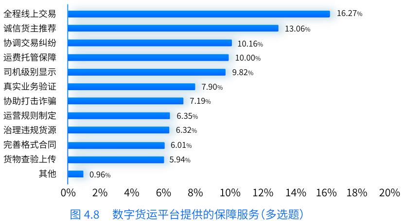 報告指出,通過貨車司機在線上獲取貨源的比例來衡量他們客觀上對平臺的使用情況,發(fā)現(xiàn)貨車司機使用數(shù)字貨運平臺的程度較高。