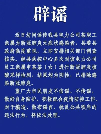 謠言粉碎機三:四川大竹電力公司某職工親屬為新冠肺炎無癥狀感染者?不實!