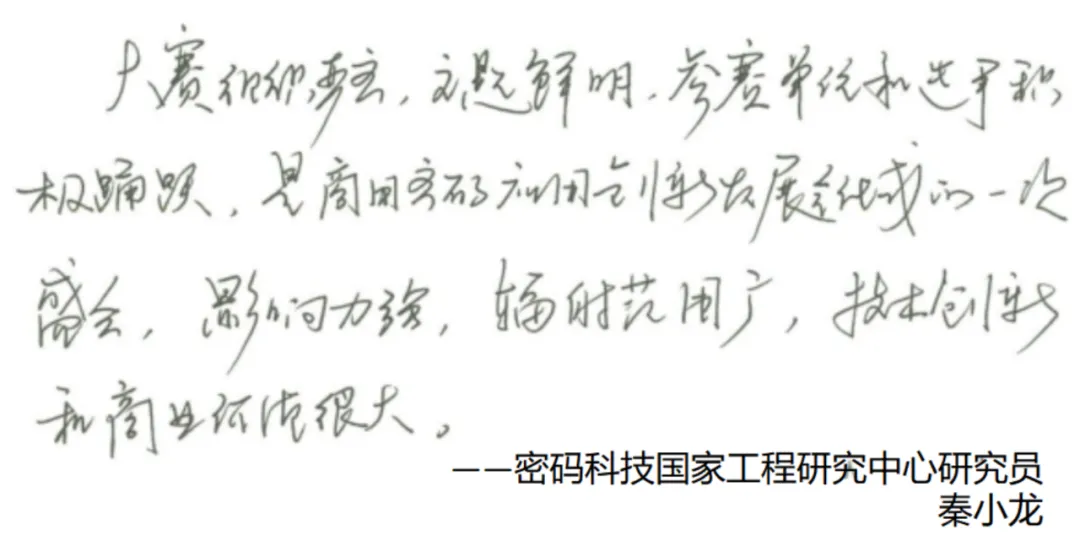 賽后,密碼科技國(guó)家工程研究中心研究員秦小龍、中國(guó)電力科學(xué)研究院高級(jí)工程師李智虎、中國(guó)科學(xué)院大學(xué)網(wǎng)絡(luò)空間安全學(xué)院教授/博導(dǎo)王躍武、國(guó)家信息技術(shù)安全研究中心商密評(píng)測(cè)主任吳冬宇等多位專家評(píng)委給大賽提出了寶貴的建議和意見。