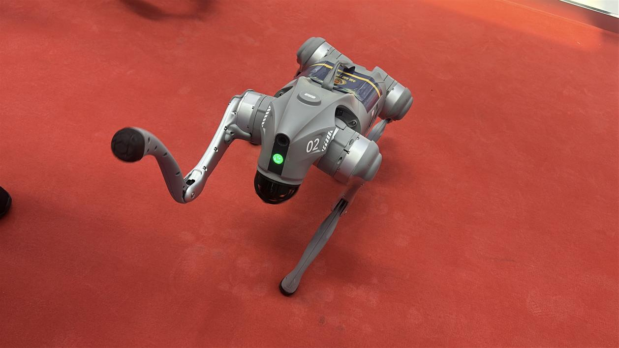 福建消防機器狗在現(xiàn)場與觀眾互動。 中國經(jīng)濟網(wǎng)記者梁木攝