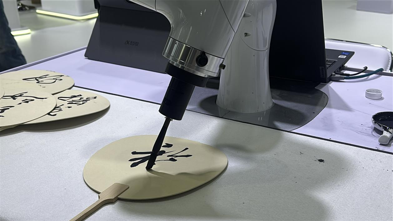 科大訊飛的機器人可以模仿書法家筆觸,在現(xiàn)場留下“墨寶”。中國經(jīng)濟網(wǎng)記者梁木攝