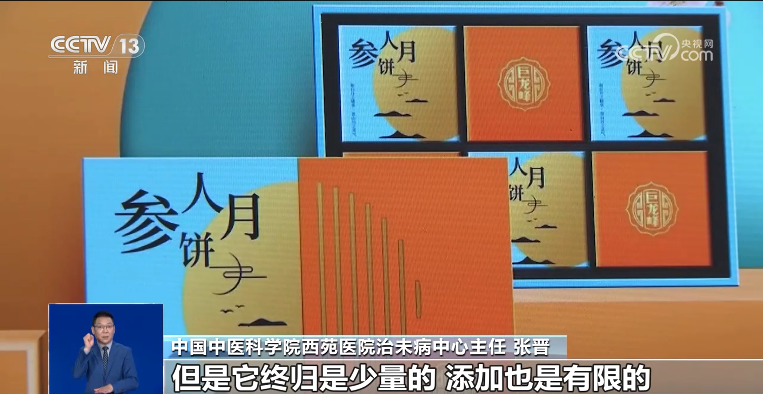 中國中醫(yī)科學院西苑醫(yī)院治未病中心主任 張晉:我們中醫(yī)講叫是藥三分毒,凡是比如說天麻、人參,還有像紅花、三七這一些,它本身就是有比如說補氣活血,還有補益肝腎的作用。我們的月餅它是一個普通的食品,如果我在家自己制作月餅,我們根據(jù)自己的體質去選擇,我想放三七,然后放一點人參,或者放一點蟲草或者放點天麻,我們因人而異是可以的,但是把這些藥材放到我們普通食品的月餅里面進行銷售,這個大家就要謹慎選擇了。