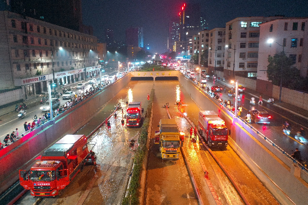 2021年7月,河南發(fā)生特大暴雨,鄭州京廣路隧道被淹。圖為中國(guó)安能救援隊(duì)伍全力開(kāi)展抽排水任務(wù)。 資料圖片