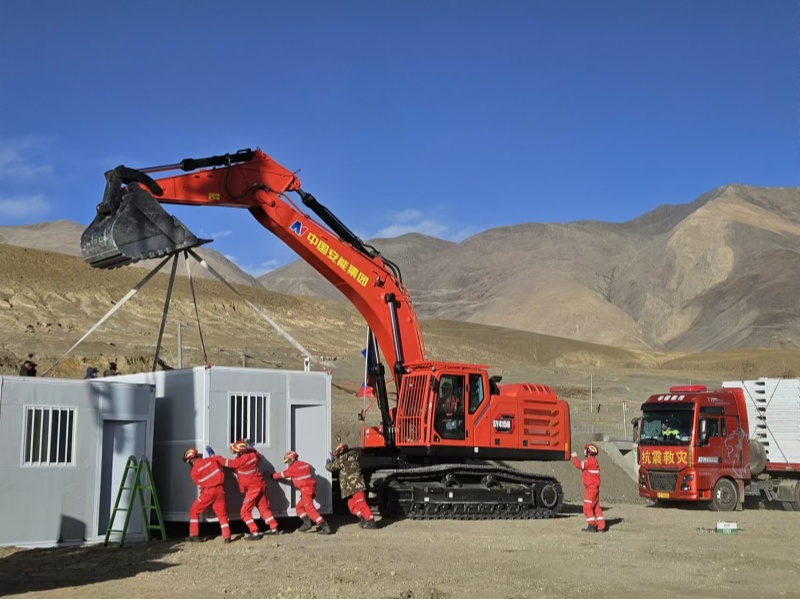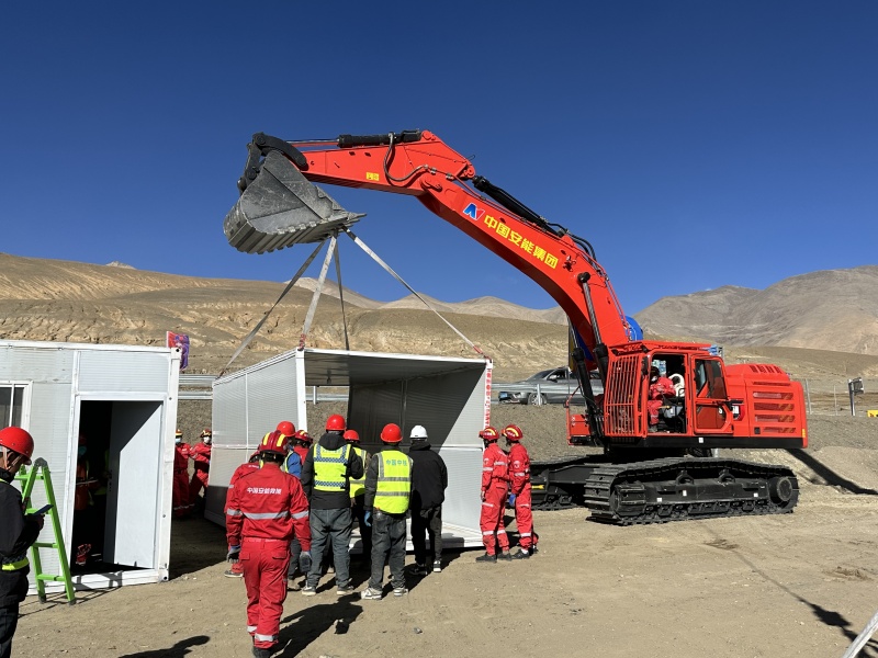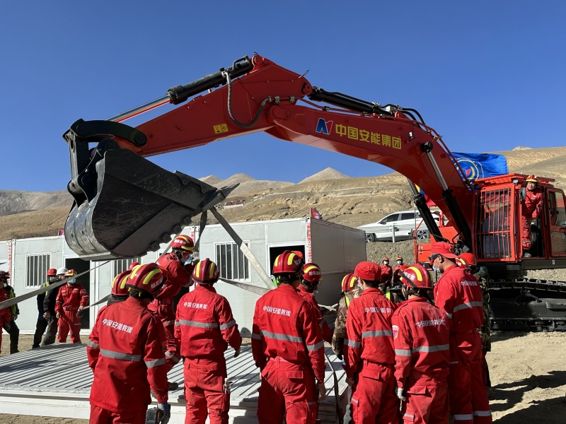 1月9日,在前方指揮部的統(tǒng)一調(diào)度下,繼完成受損房屋搜尋、用電需求保障、安置帳篷搭設(shè)、協(xié)助轉(zhuǎn)運(yùn)重傷員等任務(wù)后,為了保障受災(zāi)群眾溫暖過冬,中國安能在嘎旦村、玉白村方向組織開展場(chǎng)地平整作業(yè),并進(jìn)行活動(dòng)板房的搭設(shè)。在嘎旦村投入60余人、10余臺(tái)重型救援裝備全力投入板房搭設(shè)工作。過程中,挖掘機(jī)、吊機(jī)等重型裝備與救援人員共同協(xié)作,搭建工作進(jìn)展迅速。