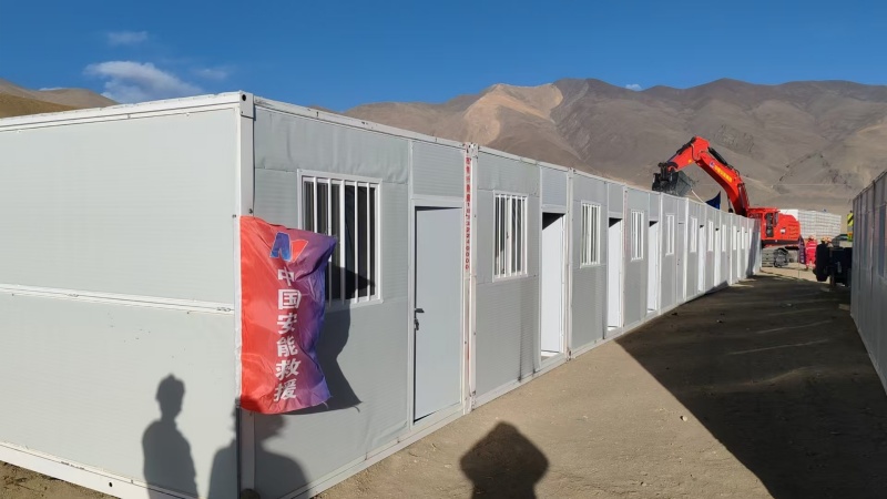 一排排活動(dòng)板房已初步搭設(shè)完畢。與臨時(shí)搭建的帳篷相比,這些板房保暖效果更好。目前,板房?jī)?nèi)設(shè)備正在逐漸完善,將盡快安排受災(zāi)群眾入住。 中國安能供圖