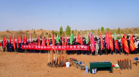 中國經(jīng)濟(jì)網(wǎng)4月23日訊 4月22日,正值第57個(gè)世界地球日暨第二十二屆庫布其植樹節(jié),內(nèi)蒙古庫布其“綠水青山就是金山銀山”實(shí)踐創(chuàng)新基地同步聯(lián)動(dòng)騰格里沙漠、烏蘭布和沙漠等“三北”工程沿線億利資源集團(tuán)治沙基地,舉行“不忘初心,治沙百年”科技植樹活動(dòng)。
