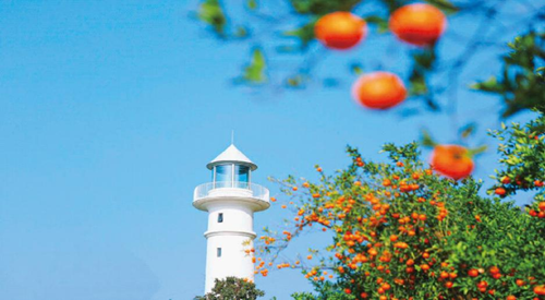 萬州小桔燈生態(tài)文化旅游區(qū)的燈塔和紅桔(重慶水利局供圖)