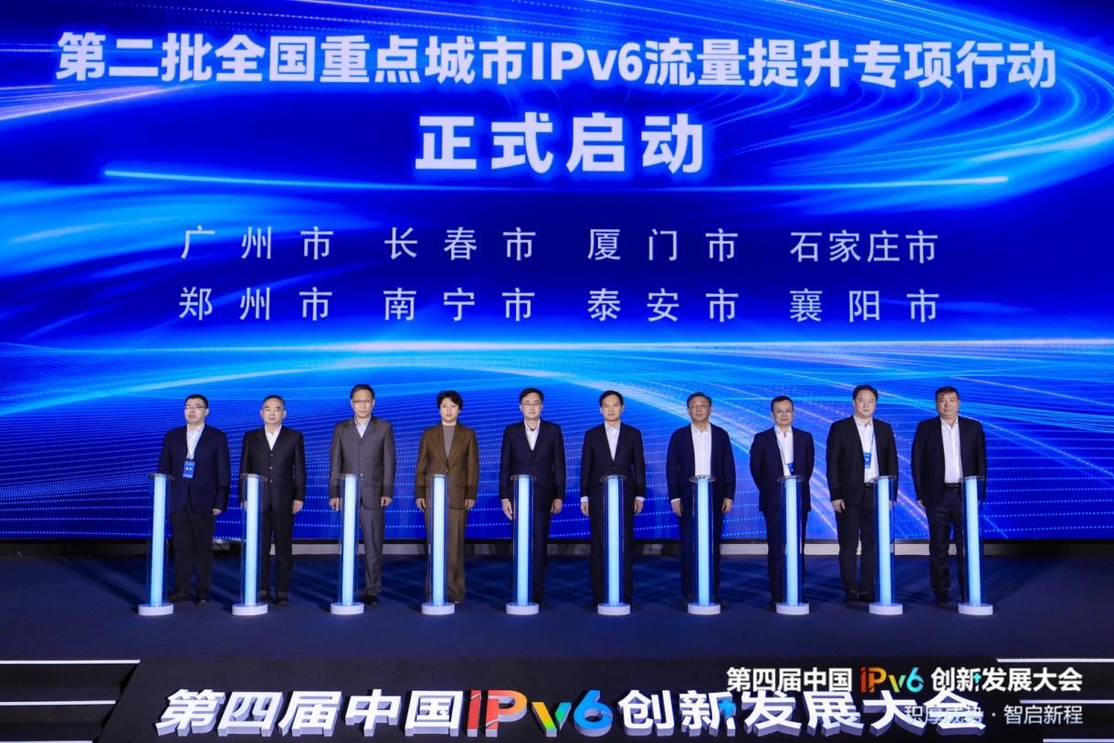 成果發(fā)布環(huán)節(jié),與會各方共同見證了中央網(wǎng)信辦、工業(yè)和信息化部組織開展“全國重點城市IPv6流量提升專項行動”的經(jīng)驗和成果,8個重點城市固定網(wǎng)絡(luò)IPv6流量占比同比增長63.14%,移動網(wǎng)絡(luò)IPv6流量平均占比同比增長12.37%。中央網(wǎng)信辦信息化發(fā)展局、工業(yè)和信息化部信息通信發(fā)展司及第二批8個重點城市相關(guān)領(lǐng)導(dǎo),共同啟動“第二批全國重點城市IPv6流量提升專項行動”,深化關(guān)鍵環(huán)節(jié)升級改造,帶動全國IPv6發(fā)展水平再上新臺階。會上還發(fā)布了工業(yè)和信息化部、中央網(wǎng)信辦組織開展“網(wǎng)絡(luò)去NAT”專項工作的階段性成果:9個試點地區(qū)基礎(chǔ)電信企業(yè)自有環(huán)境固定寬帶用戶IPv6連通率達(dá)97.52%,試點地區(qū)NAT44設(shè)備容量全面實現(xiàn)零增長。后續(xù),相關(guān)部門將在試點經(jīng)驗基礎(chǔ)上,在全國范圍內(nèi)進(jìn)一步開展“網(wǎng)絡(luò)去NAT”專項工作,持續(xù)推動網(wǎng)絡(luò)和應(yīng)用的IPv6演進(jìn)升級。