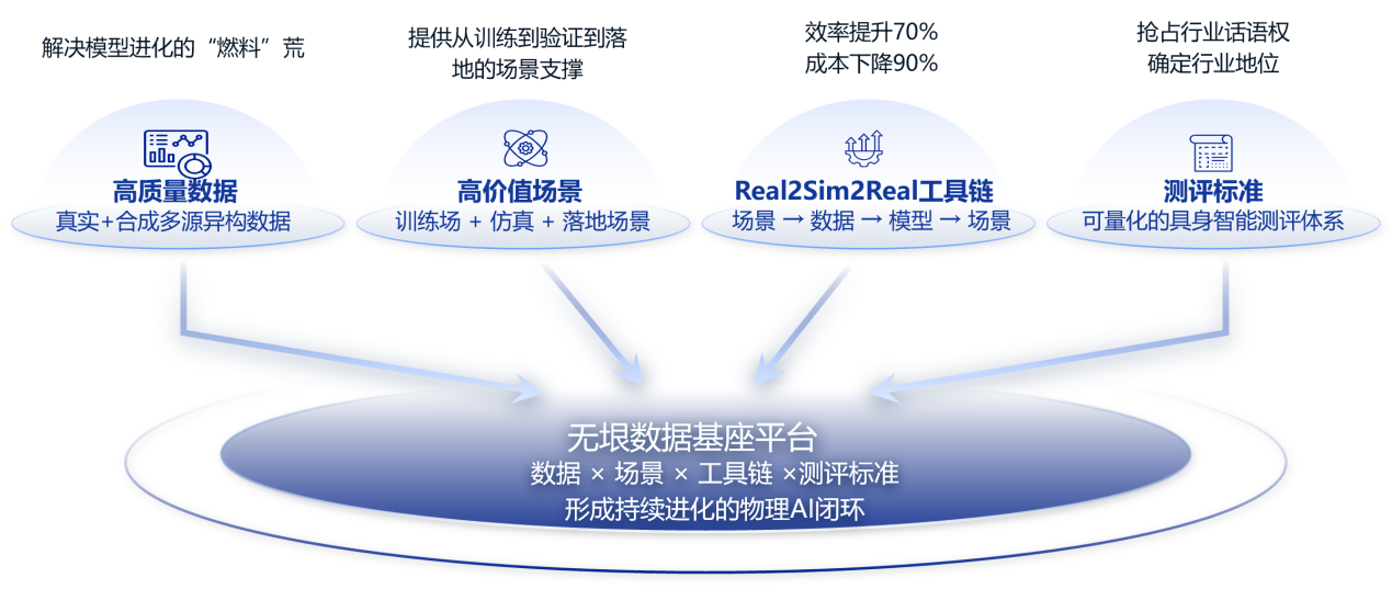 公司全棧自研“無(wú)垠”物理AI數(shù)據(jù)基座平臺(tái),精準(zhǔn)破解行業(yè)“數(shù)據(jù)、場(chǎng)景、工具鏈、測(cè)評(píng)標(biāo)準(zhǔn)”四大痛點(diǎn),構(gòu)建起行業(yè)領(lǐng)先的技術(shù)體系: