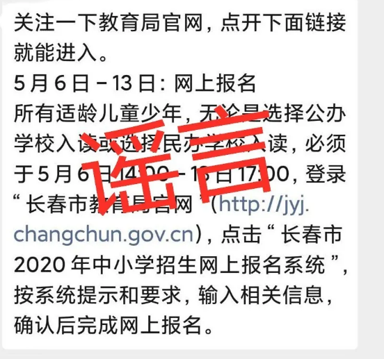 謠言粉碎機三:長春5月6日-13日義務教育招生報名?假的!