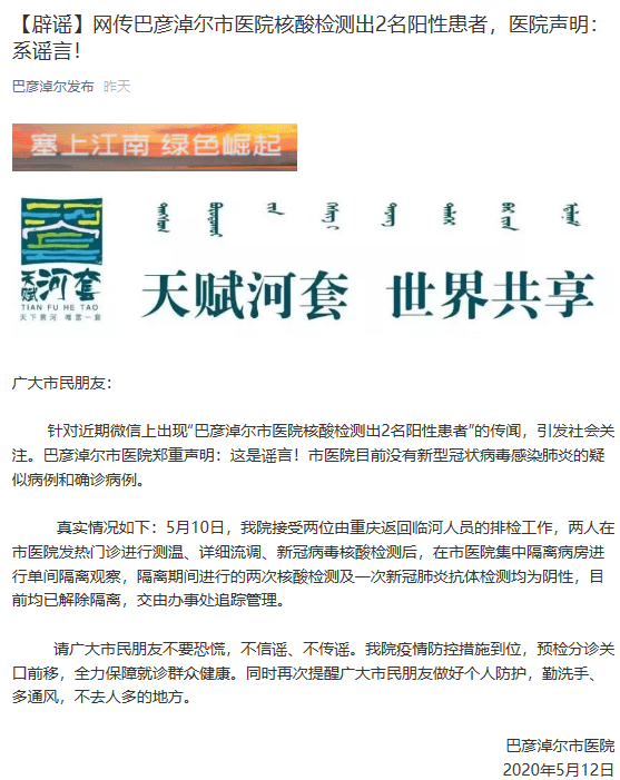 謠言粉碎機(jī)五:內(nèi)蒙古巴彥淖爾市醫(yī)院核酸檢測(cè)出2名陽(yáng)性患者?謠言!
