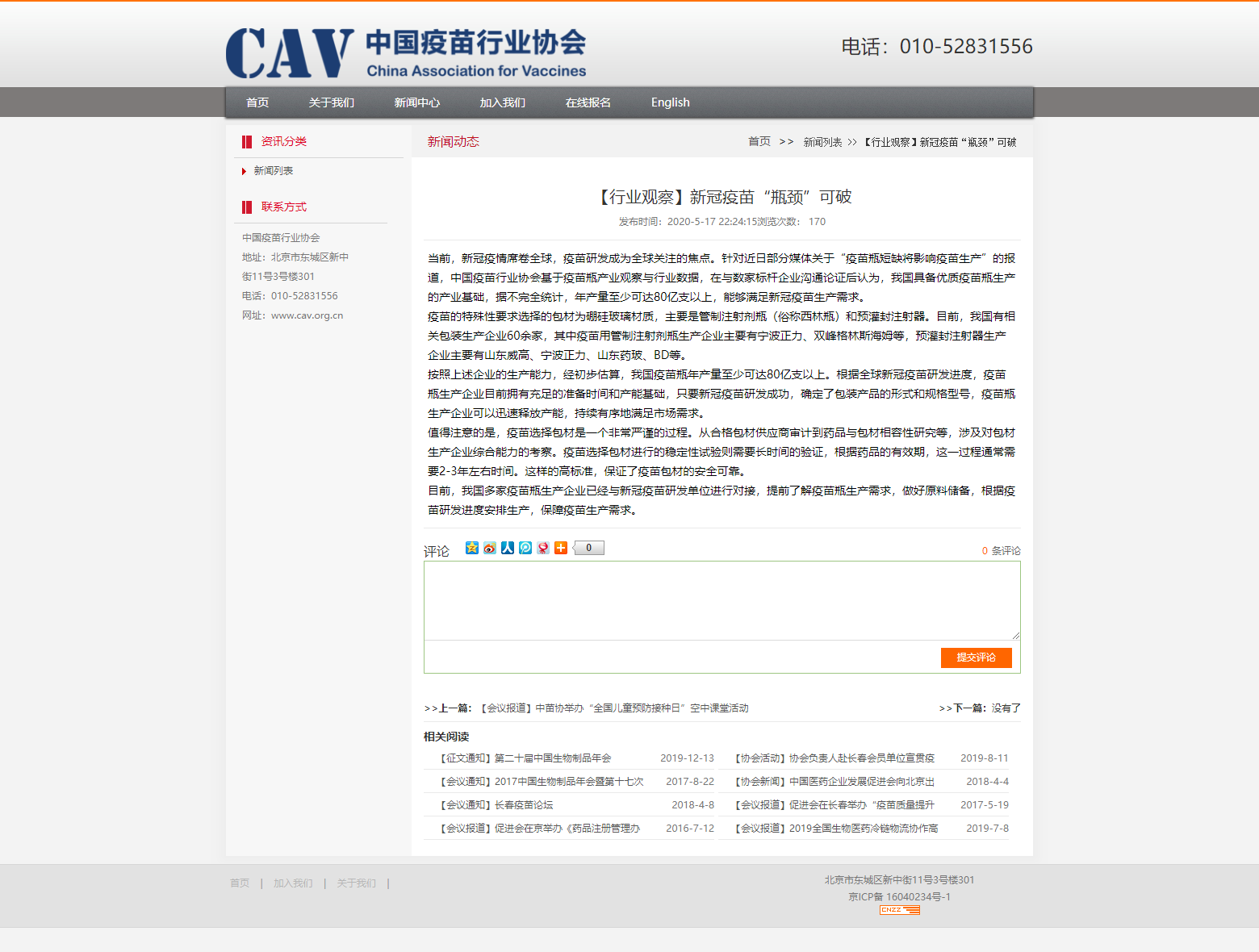 經(jīng)濟(jì)日報-中國經(jīng)濟(jì)網(wǎng)5月20日訊(記者朱國旺 郭文培)近日有媒體稱,即便近期新冠疫苗真的上市了,就算產(chǎn)量足夠,也不可能做到人手一支,因?yàn)槿騼Υ嬉呙缢璧牟A∑棵媾R嚴(yán)重不足問題。5月17日,中國疫苗行業(yè)協(xié)會發(fā)文回應(yīng)稱,我國疫苗瓶年產(chǎn)量至少可達(dá)80億支以上,能夠滿足新冠疫苗生產(chǎn)需求,“瓶頸”可破。