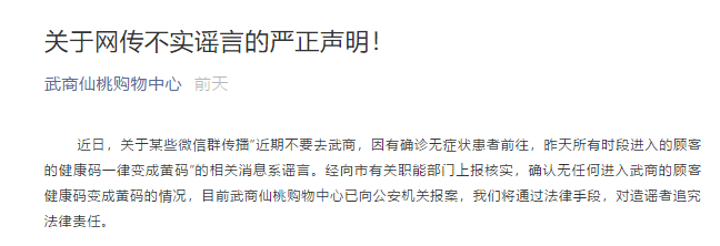 謠言粉碎機(jī)二:因無癥狀感染者前往,湖北仙桃武商購物中心顧客健康碼變黃?謠言!