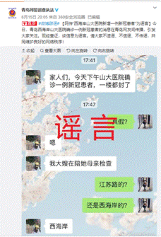 此外,記者從 @青島網(wǎng)警巡查執(zhí)法 獲悉,網(wǎng)傳“西海岸山大醫(yī)院新增一例新冠患者”也系謠言。