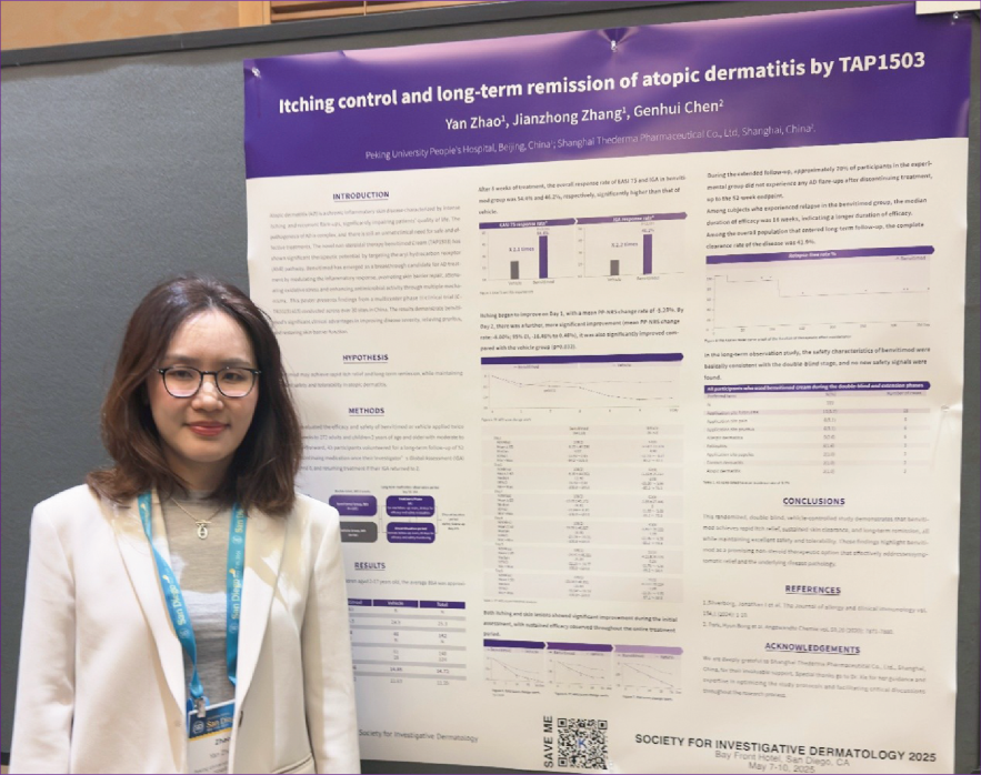 2025年第82屆美國(guó)皮膚病研究學(xué)會(huì)年會(huì)(SID)于5月7日至10日在美國(guó)圣地亞哥舉行,來(lái)自北京大學(xué)人民醫(yī)院趙琰教授關(guān)于澤立美本維莫德乳膏治療特應(yīng)性皮炎的確證性臨床研究數(shù)據(jù)重磅亮相本次年會(huì)。這是首個(gè)且唯一針對(duì)中國(guó)人群的研究,展示了澤立美本維莫德乳膏在速效止癢、療效持久及安全性方面的顯著優(yōu)勢(shì)。