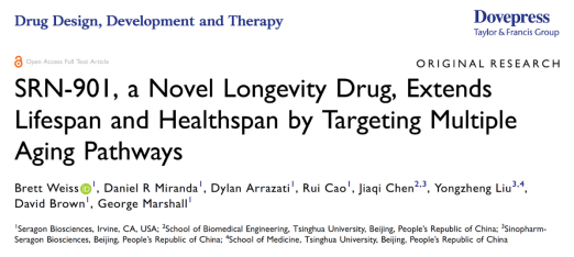 國際權(quán)威學術(shù)期刊《藥物設(shè)計、開發(fā)與治療》(Drug Design, Development and Therapy)刊發(fā)的最新研究顯示,一種名為SRN-901的新型藥物使哺乳動物壽命破紀錄延長33%、衰老速度減緩70%、腫瘤發(fā)生率降低30.53%。該項研究由賽諾根公司、清華大學及國藥賽諾根的科學家組成的聯(lián)合團隊發(fā)布,研究結(jié)果和相關(guān)論文引發(fā)了廣泛關(guān)注。