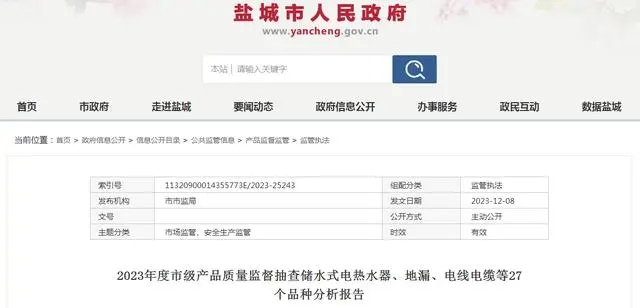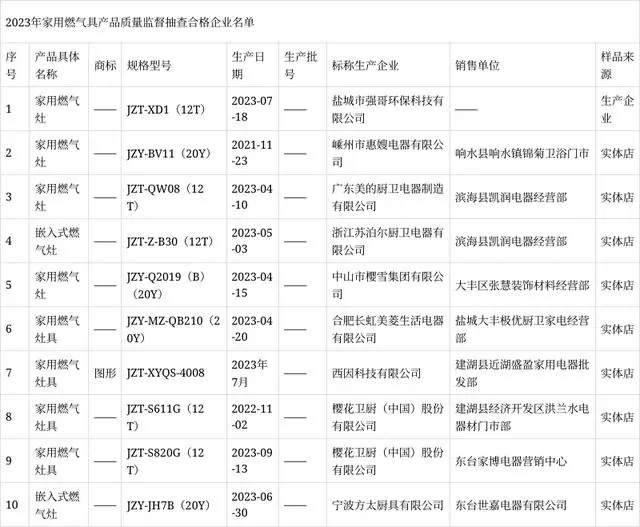 2023年度鹽城市市場監(jiān)督管理局委托南京市產(chǎn)品質(zhì)量監(jiān)督檢驗院(南京市質(zhì)量發(fā)展與先進(jìn)技術(shù)應(yīng)用研究院)組織實施家用燃?xì)饩弋a(chǎn)品市級監(jiān)督抽查。本次抽查計劃10批次,抽到10批次,經(jīng)檢驗合格10批次。