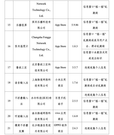 工信部稱,依據(jù)《個(gè)人信息保護(hù)法》《網(wǎng)絡(luò)安全法》《電信條例》《電信和互聯(lián)網(wǎng)用戶個(gè)人信息保護(hù)規(guī)定》等法律法規(guī),工信部持續(xù)整治APP侵害用戶權(quán)益的違規(guī)行為,在近期組織的第三方檢測(cè)機(jī)構(gòu)進(jìn)行抽查中,共發(fā)現(xiàn)27款A(yù)PP及SDK存在侵害用戶權(quán)益行為。侵權(quán)方式包括信息窗口“搖一搖”亂跳轉(zhuǎn)或誤導(dǎo)用戶滑動(dòng)亂跳轉(zhuǎn)、違規(guī)收集個(gè)人信息、APP頻繁自啟動(dòng)和關(guān)聯(lián)啟動(dòng)、信息窗口未提供關(guān)閉或退出標(biāo)識(shí)、強(qiáng)制用戶使用定向推送功能、SDK信息公示不到位以及強(qiáng)制、頻繁、過(guò)度索取權(quán)限等,涉及小米商店語(yǔ)音輸入法、vivo應(yīng)用商店的聽(tīng)說(shuō)輸入法、App Stroe的樂(lè)播投屏等。