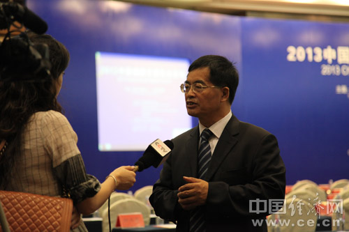 由中國道路交通安全協(xié)會、中國汽車技術(shù)研究中心和中國經(jīng)濟網(wǎng)共同主辦的“2013中國道路交通安全論壇”于8月29日在北京首都大酒店舉行。圖為清華大學(xué)交通研究所所長陸化普接受央視記者采訪。中國經(jīng)濟網(wǎng) 裴小閣 攝影