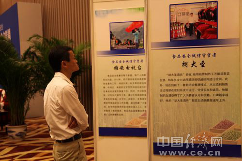 2013年全國食品安全宣傳周啟動儀式暨第五屆中國食品安全論壇6月17日在北京舉辦,今年主題為“社會共治 同心攜手維護(hù)食品安全”。圖為大自然保護(hù)協(xié)會中國主席馬云參觀食品安全“誠信守望者”展覽。中國經(jīng)濟網(wǎng) 王耀峰/攝